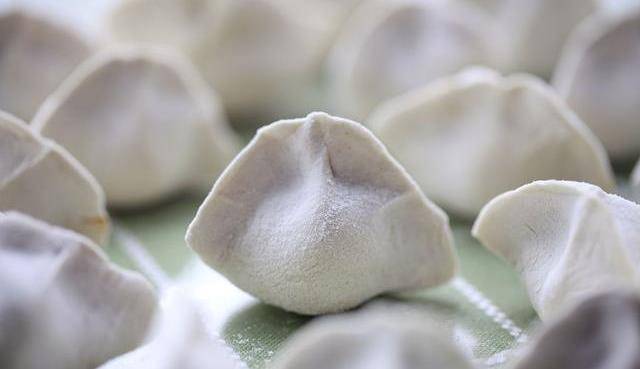 蓋保鮮膜醒面,醒好的面團搟成面條形,切成一段段的小劑子,搟成餃子皮備用。挖入餃子餡對折90度捏餃子,邊緣邊角慢慢疊加在一起捏牢固。鍋中水燒開後下入餃子煮到沸騰,煮到沸騰後加點涼水,煮熟撈出,美味的餃子就做好瞭。