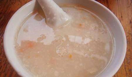 茅根粥裡的材料有茅根,黃豆,胡蘿卜,腐竹,玉竹。黃豆提前浸泡,然後跟米,茅根一起下鍋。這個粥不是甜口也不是咸口,我覺得是真好在甜咸正中間。小時候一旦上火,媽媽就會讓喝碗茅根粥清清火。