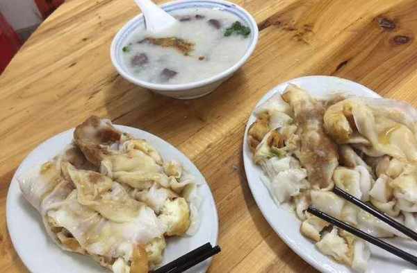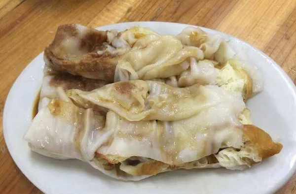 小時候搭配腸粉的經典就是用鮮豬肉,現在有很多創新的款式,加牛肉,叉燒,臘味,甚至連水果味的都有,但我每次也隻點鮮肉的。新鮮石磨人工磨出來的米漿有很香的米香味,薄薄的刷一層在盤子上,加入調味好的鮮肉推入蒸籠裡蒸,1分鐘左右後,放入煎成小段的油炸鬼(油條),再進去蒸大約1分鐘,出來後裝盤,淋上熟油,醬油弄的醬汁。材料很簡單,卻無比的鮮。