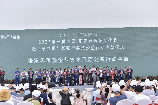 5月20日,第四個“國際茶日”“全國助殘日”兩個特殊的節日前夕,以“莓茶有愛 莓好湘約”為主題的2023第三屆中國·張傢界莓茶文化節暨“茶力量”張傢界莓茶公益行動啟動儀式在張傢界市城區市民廣場開幕。