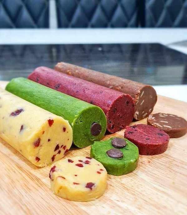 不到一個月就過年咯,趕快嘗試冷凍牛油曲奇餅幹。做法簡單直接,且一個面團可制作4種不同口味。今天采用瞭蔬果粉調出天然無色素的,原味蔓越莓,抹茶巧克力粒,紅絲絨奧利奧,和巧克力杏仁口味。面團凍硬後以切割方式來分餅胚子,快速方便。一刀切4種面團,切面平整,看到裡面滿滿餡料,超療愈舒服。烤出來的餅幹外面酥脆,放進嘴裡觸碰口水化解,形成入口即化口感。原味牛油香加上蔓越莓酸甜,抹茶搭配巧克力粒苦甜襯托,紅絲絨淡淡巧克力甜菜根香搭配奧利奧口感十足,巧克力搭配杏仁酥脆香,調和瞭各自獨特的味道口感。適合當新年禮物,也適合當年餅,一箭雙雕。