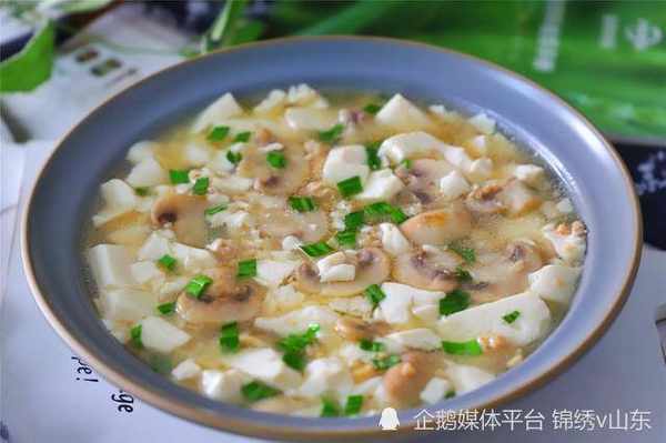 食材:南豆腐、蘑菇、玉蘭片、麻油、高湯、鹽、味精、蔥、白糖、濕淀粉