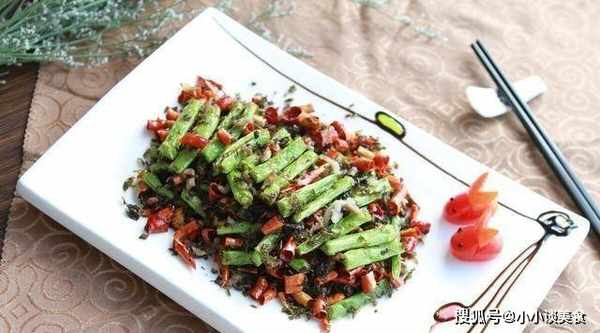 材料:四季豆、臘肉、幹辣椒、豆瓣醬、花椒、蒜瓣、食油、糖、蠔油