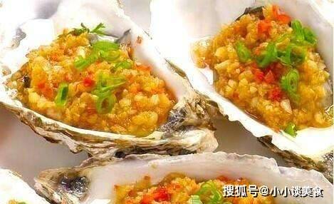 5、將醃制好的蠔肉放入洗凈的蠔殼中,在蠔肉上抹上蒜末和胡椒粉。習慣加粉絲的可以加點泡好的粉絲。
