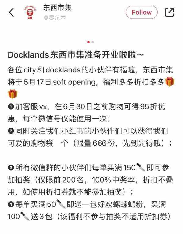 據@東西市集 官方小紅書稱,剛開業期間福利多多。