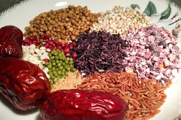 3、在市場上購買糙米、小米、高粱、燕麥片、黑米、小麥、玉米、燕麥、紅米、蓮子、紅薏米、蕎麥,並加少量的紅豆、黑豆、眉豆、芝麻、黃豆,將以上所提到的食材統一先放入熱水中浸泡大約4個小時,之後將浸泡後的食材放入鍋中加水煮成粥食用。雜糧粥對於身體健康以及頭發生長有非常好的幫助,如果找不到那麼多種類也沒關系,隻是在這裡列出來的比較全而已。