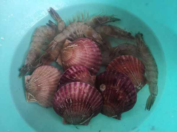 第二步:把扇貝用牙刷刷乾淨,鮮蝦去掉蝦毛和蝦槍清洗乾淨備用。