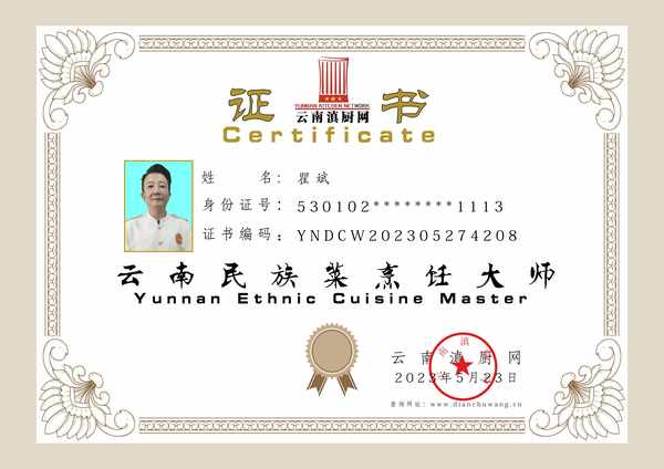 雲南省烹飪協會常務理事