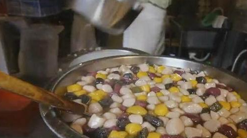 煮好的芋圓撈出的芋圓放到我們早已煮好的糖水中,然後一個個有彈性、香韌可口的芋圓就做好瞭。看著是不是很美味呢?大叔說最好的小吃,一份賣10元,由於這種小吃不常見,2小時大叔就賣瞭500元……不過很多路人也表示沒吃過這種小吃?你們吃過麼?