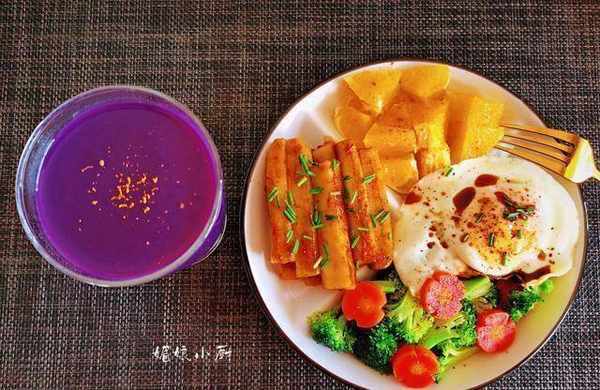 二、紫薯銀耳羹/香煎年糕條/水煮西蘭花/水煎蛋