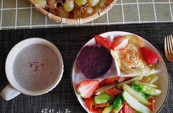 七、黑芝麻糊/紫薯/兒菜炒胡蘿卜、煎蛋