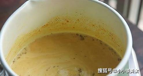 然後加入20克黃咖喱,攪拌至融化,分階段加入適量的鹽,調整自己喜歡的口味。