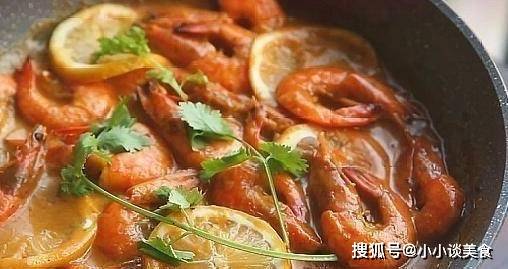 將檸檬片放入鍋中,大火收汁,加入香菜,一隻鮮美多汁,香氣濃鬱的咖喱檸檬蝦就做好瞭。