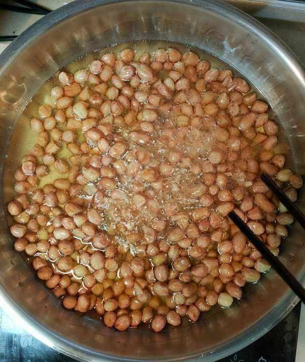 這一步很重要,有的小夥伴認為洗花生有水瞭,入油會比較麻煩。恰恰這是油炸花生米不糊的一個小妙招。