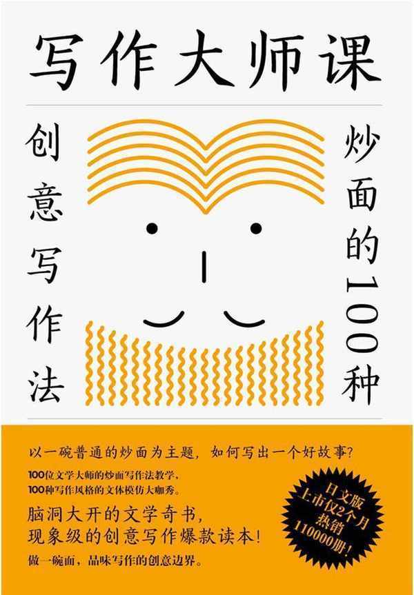 然而,在日本文字工作者、編輯神田桂一與菊池良的筆下,這一難題便可迎刃而解。他們為瞭致敬100位東西方文學大師,模仿起大師們的寫作風格,寫出瞭極富創意的《寫作大師課:炒面的100種創意寫作法》這本書。從這本書中,你可以發現雖然速食炒面做法單調,可隻要嵌入各類大師體,原來炒面也可以做的如此活色生香!