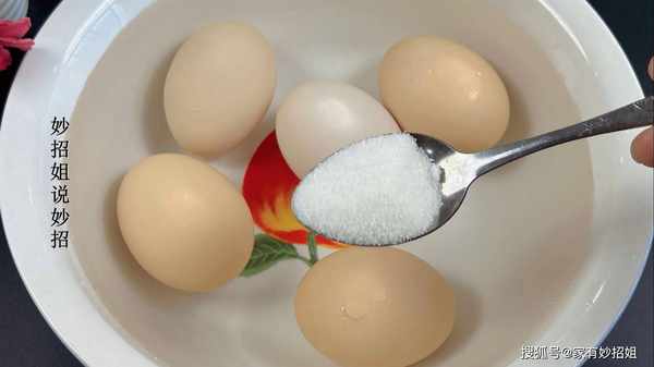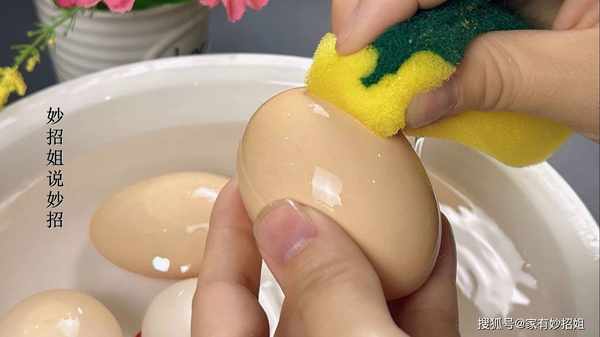 第一步:首先我們根據傢裡人口的數量準備適量的雞蛋,我傢有5口人,準備瞭5個雞蛋。將適量的自來水倒入雞蛋中,接著加入一勺食鹽,食鹽具有消毒殺菌的作用。然後使用廚房紙巾或百潔佈徹底擦幹凈雞蛋表面的污垢,因為雞蛋表面可能存在大量的細菌和大腸桿菌。在食用前務必將雞蛋清洗幹凈。