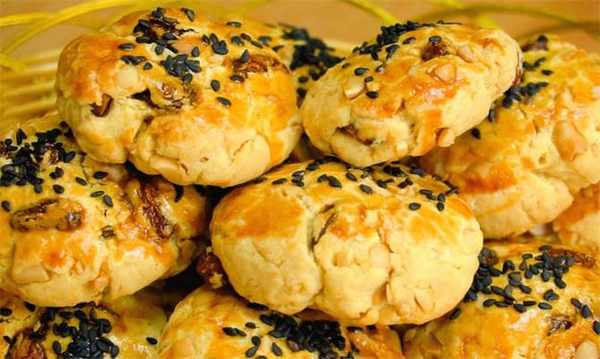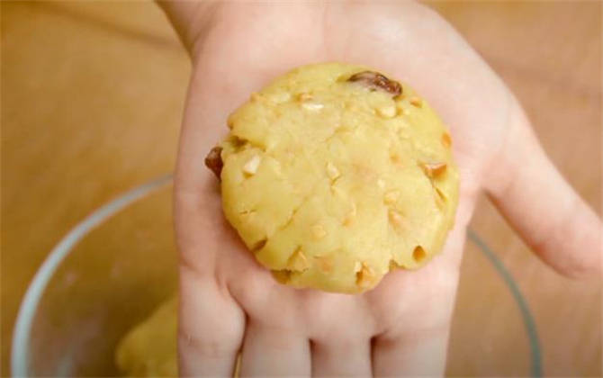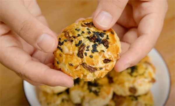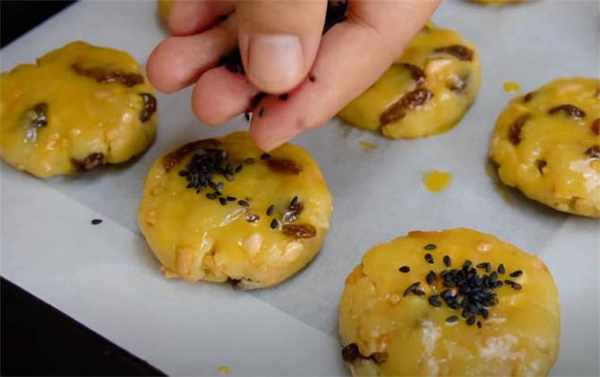花生碎、黃油、白糖、低筋面粉、葡萄幹、食用油、黑芝麻