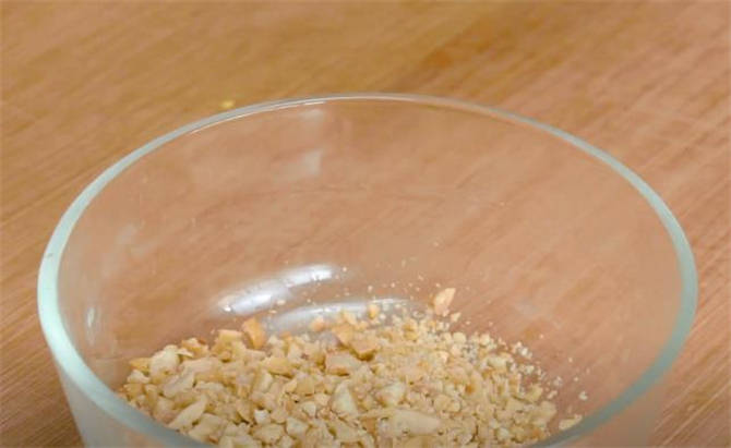 1.首先借助搟面杖和幹凈的袋子把花生壓碎備用。