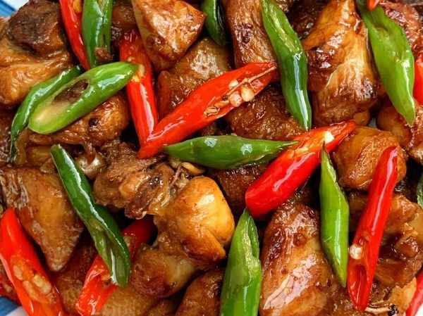 食材準備:雞腿、青紅椒、花椒、薑片、蔥段、蒜瓣。
