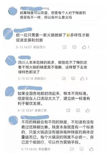部分看似是四川的網友則表示,本來吃辣的人就多,不能吃辣的人也沒必要幹預火鍋辣度,這樣搞下去,地域特色都沒瞭。