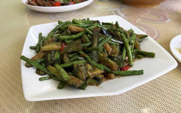 這個菜比較常見,無論南北方都有,屬於比較很典型的傢常菜,唯一的區別是,這邊用的茄子,是那種白皮的茄子,肉質很嫩的那種。看到出來,這個菜的朋友,是利用油的高溫把它烹飪熟,然後再來烹飪。