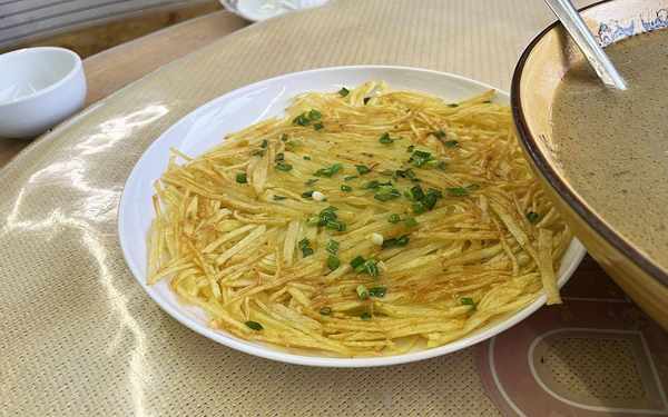 以前我們經常看到的土豆絲,都是直接炒,比如醋溜土豆絲,還有酸辣土豆絲,但是把土豆絲拿來煎,我還是第一次看見,這個做法,其實還是不錯的,我覺得大傢有機會也可以在傢裡嘗試一下,土豆軟糯鮮香,還帶著一絲的脆感。