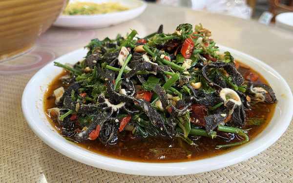 這個菜說實話是我第一次吃,在江西的時候,基本看不到這個菜,口感吃起來很是脆爽,非常的下飯,而且刺五加搭配著毛肚之後,大口下去,層次感非常的明顯,在天氣熱的時候,吃上這樣一個菜,還是很過癮的。