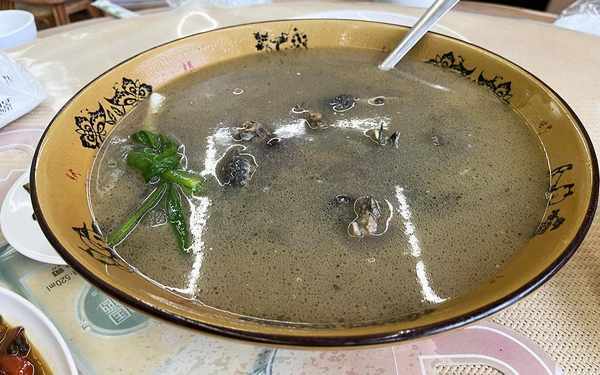 因為長途坐車的緣故,又加上天氣比較的炎熱,所以主食,直接沒有要米飯,而是選擇雞絲紫米粥,這個真的非常的好吃,裡面有雞絲,還有茴香,吃在嘴裡香味四溢,還有雞肉的香味,給人的感覺吃在嘴裡很清爽,不知不覺就吃瞭2碗。
