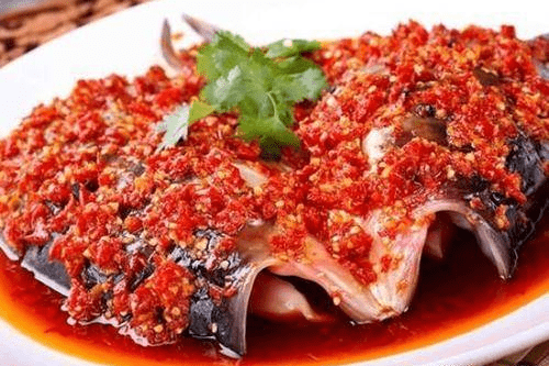 這是一道非常著名的湖南菜,而且這道菜據說還與一個著名的歷史人物有關。在清朝的雍正年間,有一位漢人文人黃宗憲,他內心非常的不滿足清朝的統治,害怕文字獄因此就逃到瞭湖南這一代,在這裡他經過瞭一個小鄉村,非常饑餓的他請求一傢農戶給他一點飯吃,而這傢人恰巧也是心地非常善良的一對夫妻,於是就把剛剛撈上來的一條魚給做瞭出來。其中有一道菜就是把自傢做的剁椒和魚頭給蒸在瞭一起,味道非常的鮮美,讓黃宗憲吃瞭這一頓之後內心是久久不能忘懷,即使他逃回傢裡後已經讓傢人照著這種方法做剁椒魚頭,這剁椒魚頭也就從此流傳瞭開來。