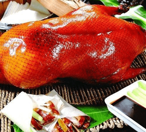 "北京烤鴨"歷史悠久,早在南北朝的《食珍錄》中已記有"炙鴨"。元朝天歷年間的禦醫忽思慧所著《飲膳正要》中有"燒鴨子"的記載,燒鴨子就是"叉燒鴨",是 早的一種烤鴨。而"北京烤鴨"則始於明朝。朱元璋建都於南京後,明宮禦廚便取用南京肥厚多肉的湖鴨制作菜肴,為瞭增加鴨菜的風味,采用炭火洪烤,使鴨子吃口酥香,肥而不膩,受到人們稱贊,即被皇宮取名為"烤鴨"。烤鴨選用北京填鴨,在其養到四斤左右,強制喂食,經六七十天的填喂,體重即可達3公斤,且具有體軀肥壯,皮薄脯大的特點,特別適於烤炙。北京鴨 初是飼養在玉泉山水紗的河流中,入冬不凍,喝的是礦泉水,吃得是礦泉魚蝦和水草。