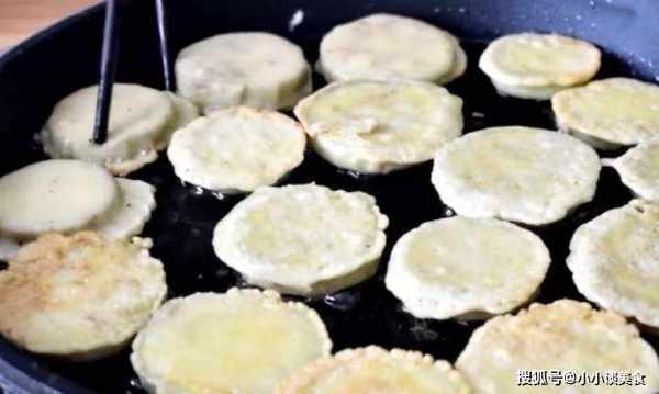 2、另取一個碗,碗中加入適量面粉,再加入雞蛋2個,鹽適量,胡椒粉少許,再加水攪拌成稀面團。3、將切好的茄子片放入面團中攪拌,使每片茄子均勻地包裹在面團中。4.預熱電煎鍋,在鍋底刷一層油,油熱後放入包好面團的3片茄子,蓋上鍋蓋燜約3分鐘。3分鐘,時間到瞭,定底後翻面再煮2分鐘,煎至兩面金黃酥脆即可出鍋。尖端: