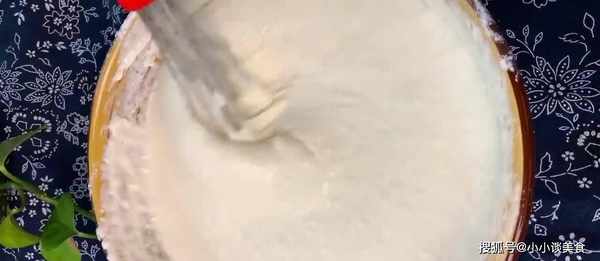 首先,將200克面粉倒入碗中,然後加入足夠的水,制成濃稠的酸奶狀糊狀物,如上圖所示。