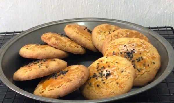 1、首先準備核桃仁,去核桃仁、雞蛋1個、白糖30克、玉米油50克、小蘇打2克、玉米淀粉20克、面粉100克,備用。2.先將雞蛋打入碗中打勻,然後加入糖,食用油,拌勻,再加入生粉,拌勻,加入面粉拌勻,拌至面團變粘稠。3、將核桃仁放入塑料袋中用搟面杖搟碎,倒入面盆中拌勻,戴上一次性手套,取適量面團,在掌心搓成圓形.,壓平並放在襯有防油紙的烤盤上。裡面準備1個蛋黃,拌勻,抹在生坯上,再放少許黑芝麻。4.烤箱預熱180度5分鐘,把烤盤放在烤箱中層烤15分鐘左右。時間過去後,可以從烤箱中取出,待稍微冷卻後即可食用。尖端: