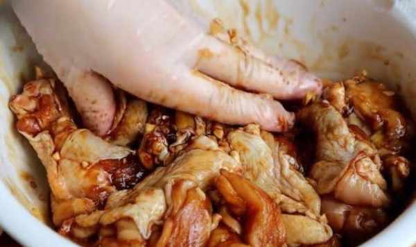2、泡好的雞翅切兩刀,然後醃制,這樣雞翅入味更好。