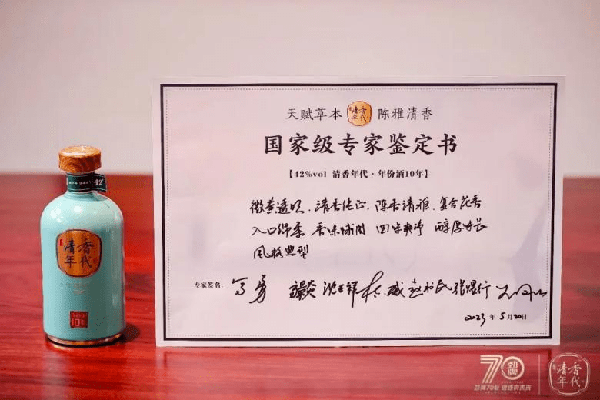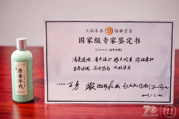 由高景炎、馬勇、杜小威、沈正祥、張煜行、趙書民、王鳳仙組成的專傢團在5月20日對清香年代系列產品進行瞭觀色、聞香、品鑒、回味後,從口感和品質上高度肯定瞭清香年代的產品品質。其中,53度清香年代·18年得到瞭專傢團“微黃透明,清香馥鬱,陳香幽雅,糧香舒適,豐滿綿柔,諸味協調,回甜細膩,酒體醇厚,餘味悠長,風格獨特”的權威鑒定評語。權威的品質背書也映射出清香年代對品質的極致打磨和勁牌70年的品質自信。