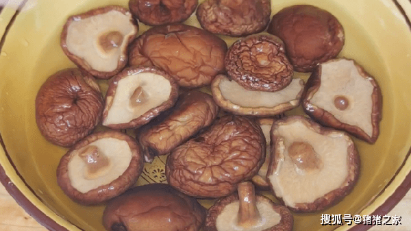 4.香菇泡發好後清洗幹凈,然後擠幹水分,放入小碗中備用。準備一個去皮的土豆切成滾刀塊,切好後放入清水中,防止氧化變黑。