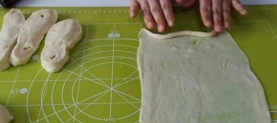 待表面光滑後,抹一層油,蓋上保鮮膜靜置一夜。將面團切成九個大小相等的小塊。