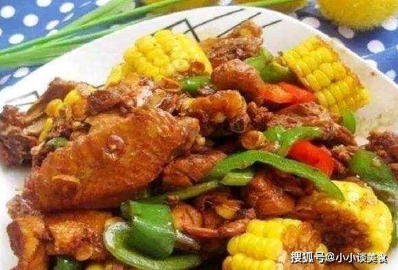 原料:玉米、雞肉、油、鹽、醬油、醬油、大蒜、青椒。