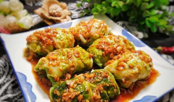 這道菜,既有白菜的清甜又有香菇雞肉餡兒的鮮香,再加上蒜香,口感豐富,回味無窮。讓普通的大白菜也變得高大上起來。
