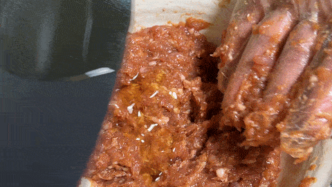 20. 接著加入雞精,再次抓勻,餡料制作完成
