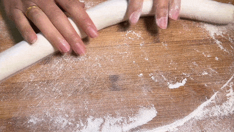 24. 再用搟面杖搟成四周薄,中間厚的餃子皮