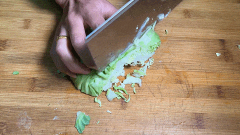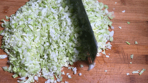 5、 圓白菜切成小丁,然後加入食用油拌勻,鎖住水分
