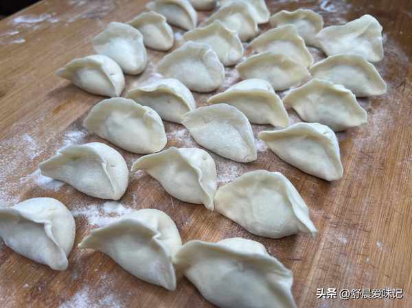 8、 包成元寶一樣的餃子,可以多包一點凍起來,隨時吃隨時煮