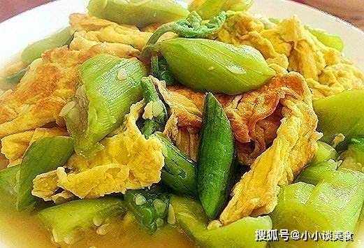 4、鍋用旺火燒熱,加入油。待油溫升高時,倒入絲瓜中,炸至熟透。加入煮雞蛋一起炒。然後根據個人口味加鹽。
