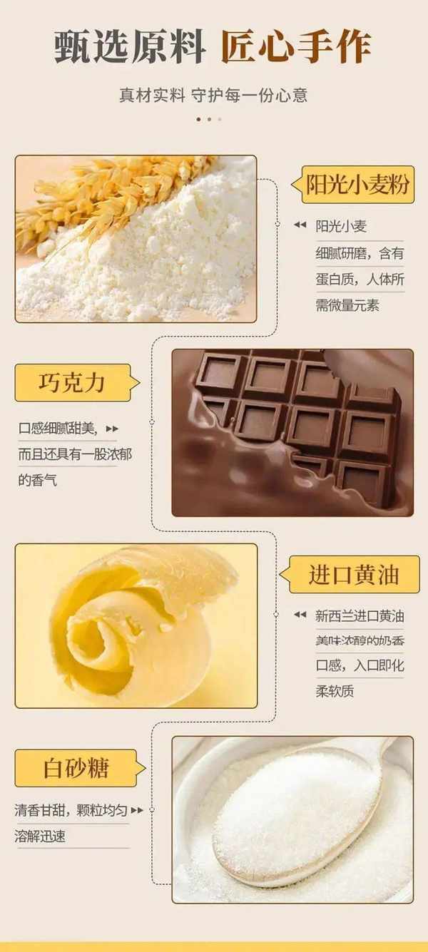杏桃排270g/盒*1、芝麻松仁排270g/盒 *1、巧克力拉花135g/盒*2、蝴蝶酥150g/盒*2