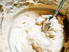 11.奶油打發到有紋路瞭加巧克力榛子醬接著打發直到固體不要過度打發
