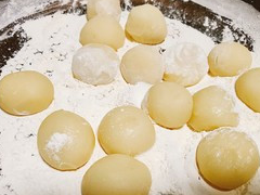 8.等量分(20克)搓球放入糯米粉裡
