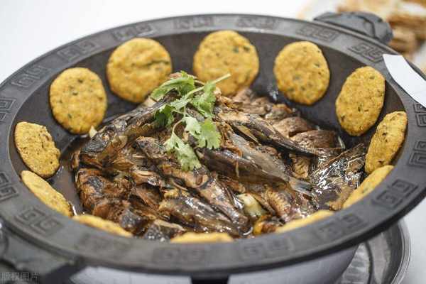 貼餑餑熬小魚,天津傳統特色風味菜肴,主要是由鯽魚、餑餑為原料制成的菜品。相傳此菜原是天津運河邊一普通老百姓在傢中吃的菜肴,為瞭吃起來方便,就把玉米面拍成餅子狀貼在鍋邊,鍋中直接熬制著小魚,待魚熟之後直接用手拿著餑餑配合小魚一起食用,後來被乾隆皇帝微服私訪時看到,皇帝嘗瞭之後覺得味道十分美味,正因為是皇帝誇贊過的,後來天津運河邊的人們都效仿起來瞭,慢慢的就成為瞭一道天津大眾化風味小吃,現在也已經在全國流行。