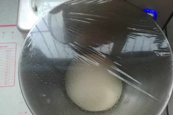 收圓放回攪拌桶,蓋保鮮膜室溫發酵。