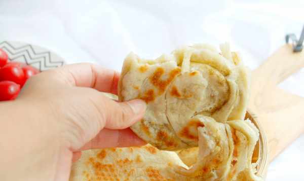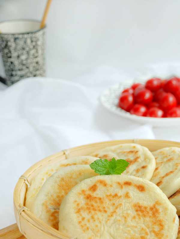 這款小餅,雖然需要發面,但也不費事兒,前一天晚上發好面,放進冰箱,第二天早上起來,不用揉揪兩塊放案板撒點油和椒鹽卷起來按扁,下鍋煎一下五分鐘就熟瞭。表皮金黃焦脆,內芯喧軟甜香,配上一碗小粥,一碟小菜,幾片水果,就是一頓充滿能量的早餐瞭。